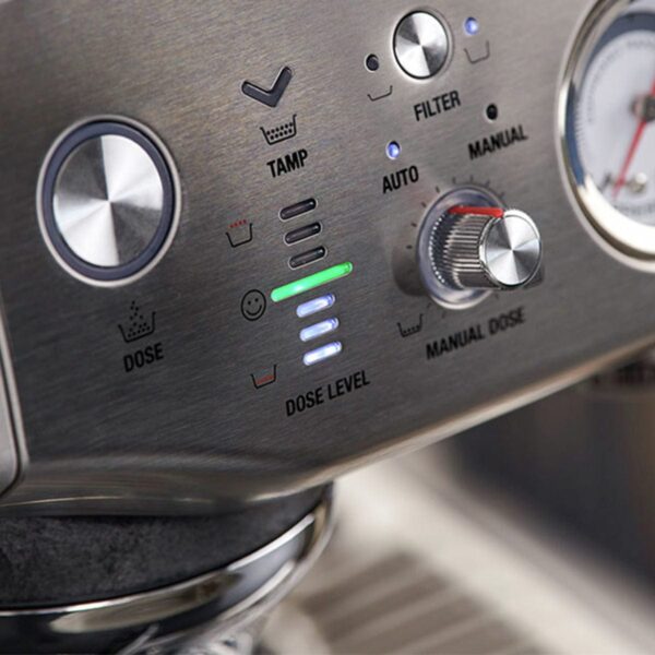 - Assisted Tamping – Delivers a constant 10kg impression to your dose, finishing it with a 7º barista twist for a more polished puck.
